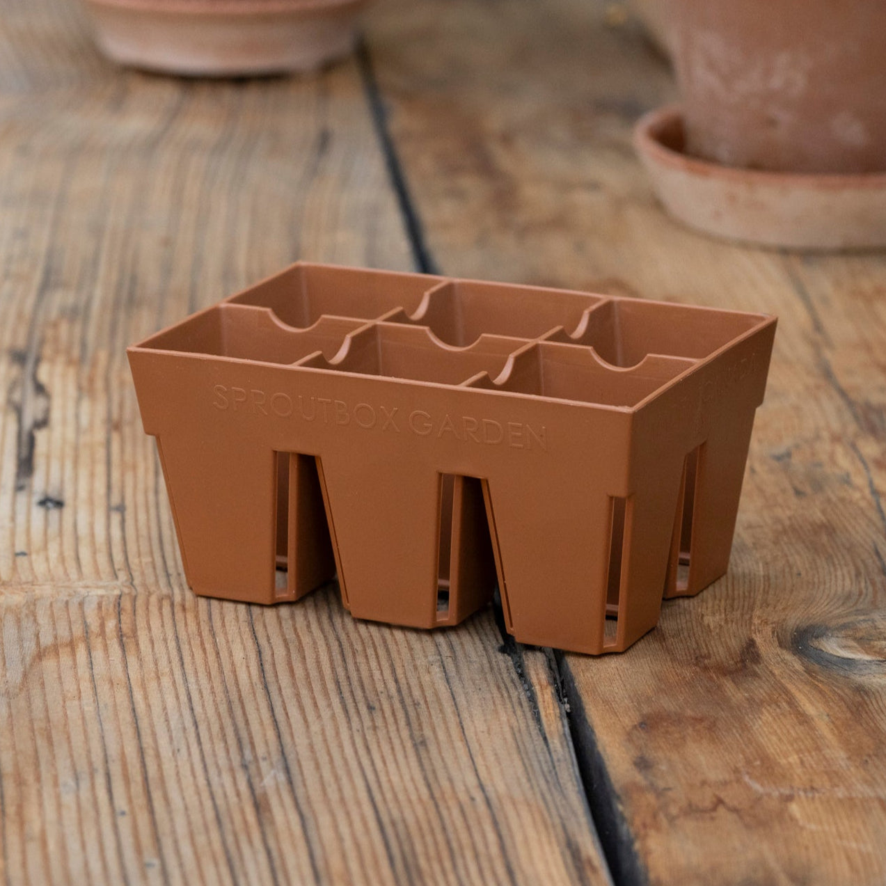 The 6-cell Sproutbox Seed Starting Trays is perfect when you only need a handful of starts—whether it’s a few herbs for the kitchen, flowers for the front yard, or a small test batch of tomatoes before the full planting begins.